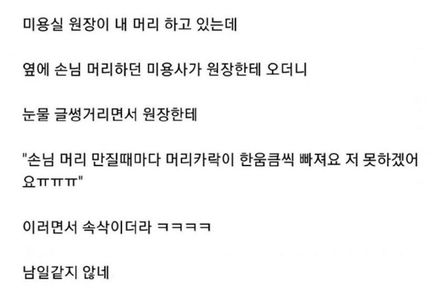 미용사가 이발하다가 울먹이면서 못하겠다고 한 이유