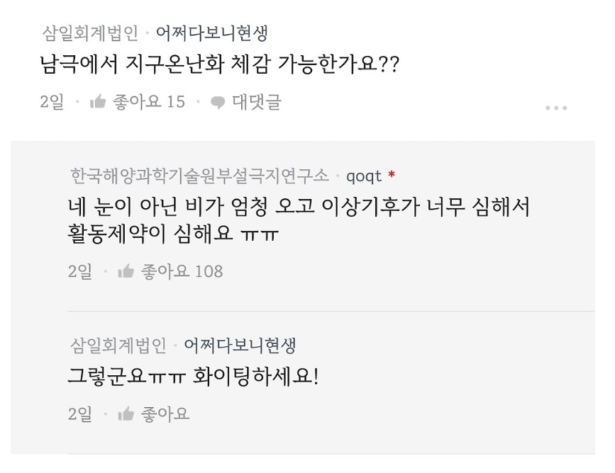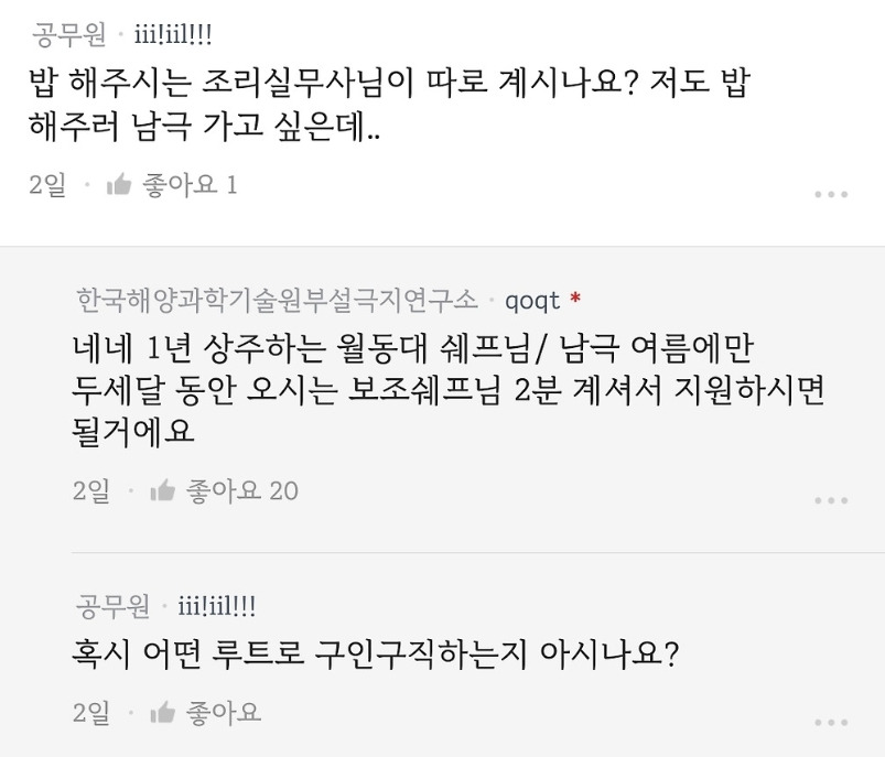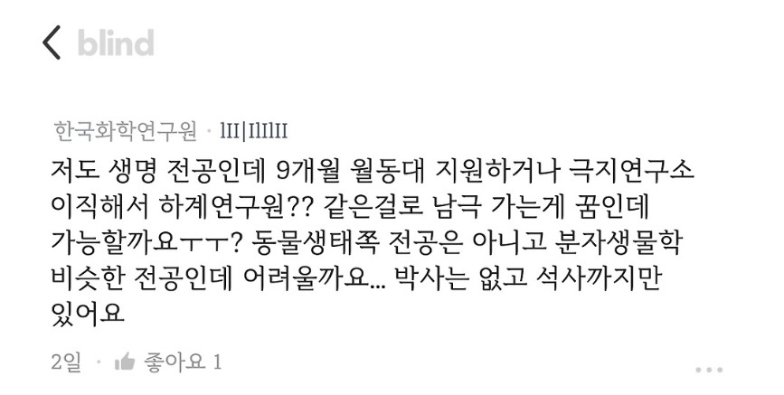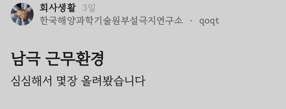 최근 블라인드에서 화제된 남극 근무환경